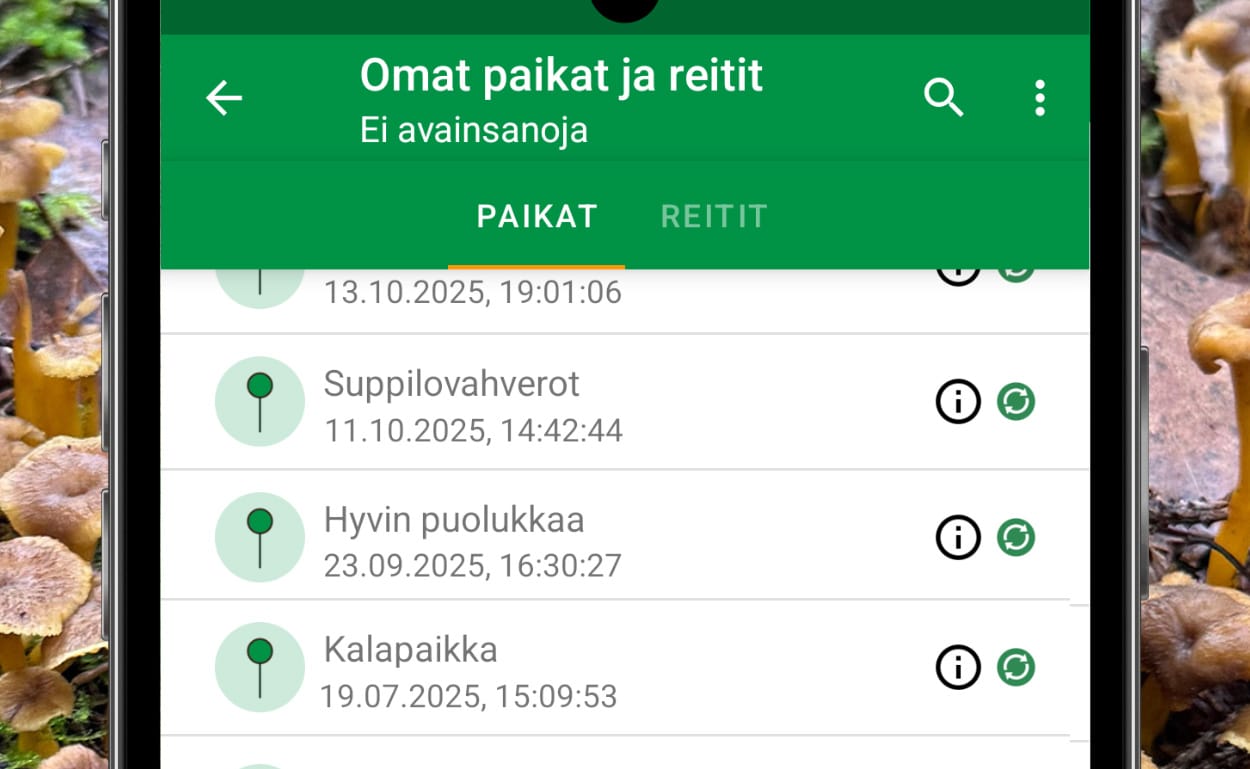 Paikka- ja reittimerkintöjen tallennus tiliin ja synkronointi