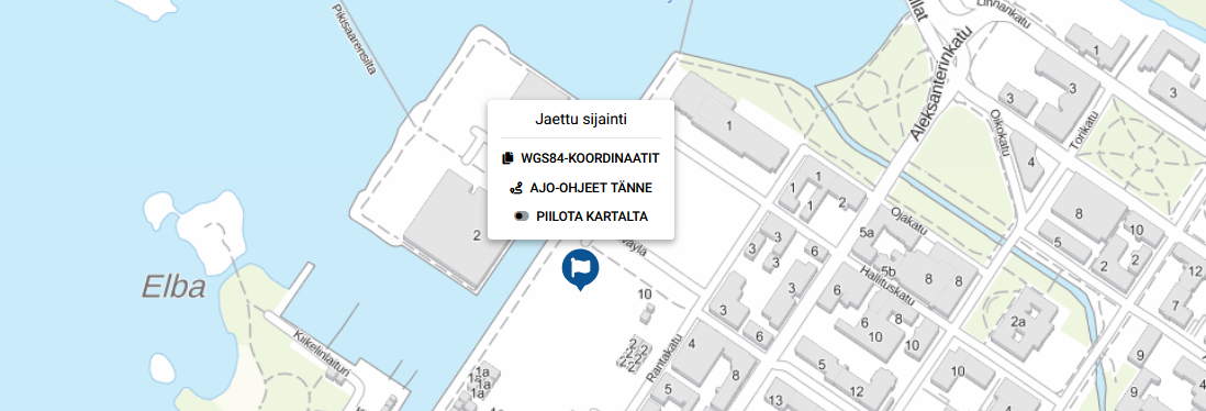 Löysitkö erikoisen kivipatsaan, jonka haluat näyttää myös muille? Tai paikan, jossa on hyvä tavata lähistöllä oleva ystävä? Muista jakaa tärkeät sijainnit kohteen jakotoiminnon avulla. Jaettu sijainti on helppo avata karttapohjalla myös silloin, kun sovellusta ei ole asennettu laitteelle: yhden linkin painallus riittää. Jaettua linkkiä painamalla saat näkyville tietokuplan, josta on mahdollista avata myös ajo- tai kävelyohjeet jaettuun sijaintiin. Tämä on taajamaolosuhteissa hyödyllistä esimerkiksi silloin, jos odotat tutultasi kyytiä ja alue sattuu olemaan vieraampaa autoa ajavalle tutullesi.