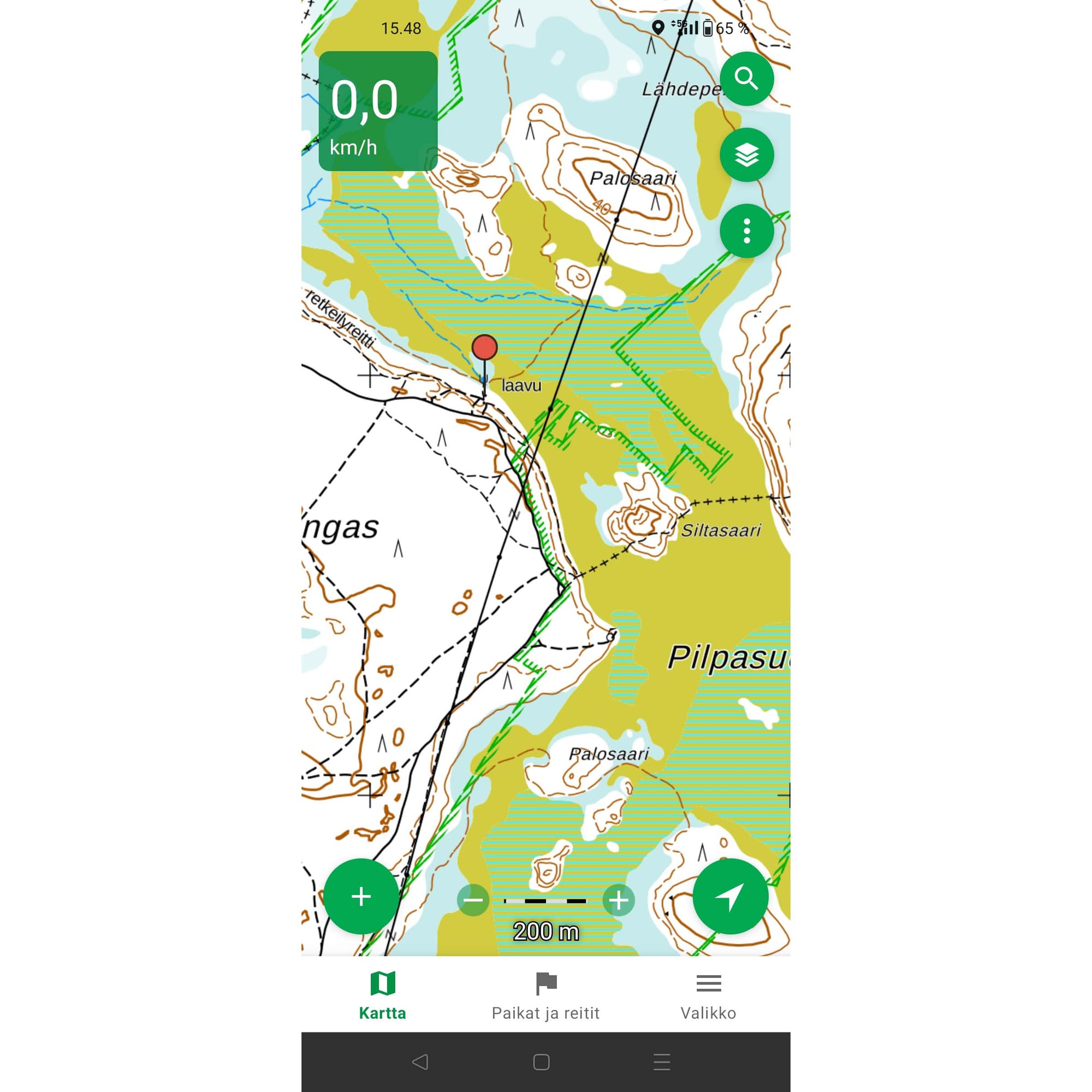 Laitamme tulet nuotioon, jonka valon turvin näemme kaikki neljä viimein toistemme kasvot. Nuotio valaisee juuri ja juuri laavun, pimeyden verhotessa kaiken ympäröivän luonnon näköpiirimme ulkopuolelle. Maisemia ei tähän kellonaikaan kannata lähteä ihastelemaan, mutta elävän tulen loimu luo yllättävän rauhoittavan ympäristön, jossa mieli lepää ja katse pysyy vain siellä, mihin valo ylettää. Olemme ikään kuin omassa pienessä, valoisassa kuplassamme pimeyden keskellä.